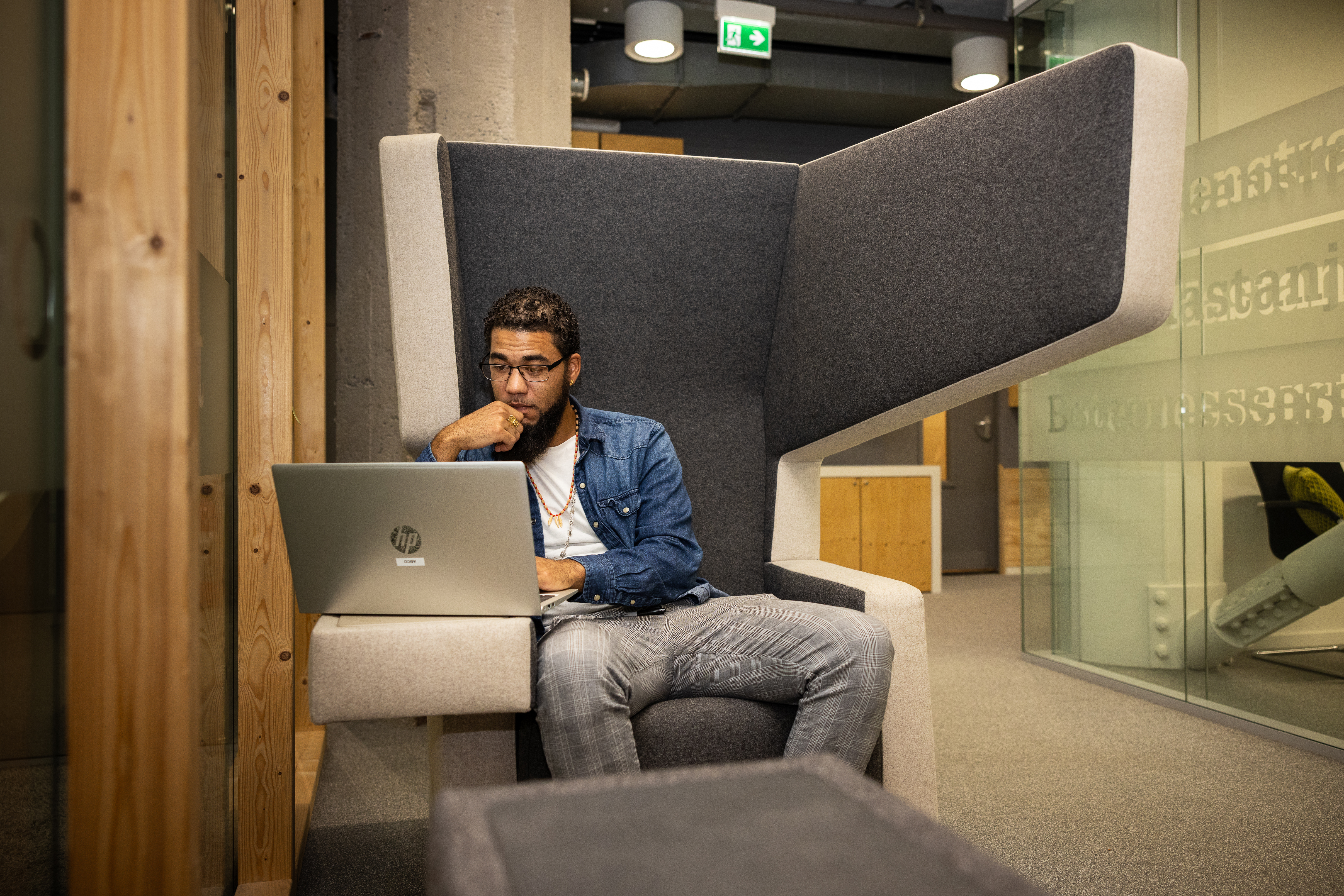 Doet Kevin dat verduurzamen zelf? “Nee,” lacht hij. “Wij zijn er vooral voor de bewonerscommunicatie. Ik kondig de werkzaamheden aan bij huurders, organiseer informatieavonden, ga op huisbezoek voor warme opnames. Maar ik schakel ook met de aannemer en assisteer de projectleider. Dus ik werk voornamelijk voor de bewoners, maar in de brede zin van het woord. In mijn werk ben ik 50% buiten en 50% binnen aan het werk. Het hangt af van de planning, soms heb ik intern veel meetings en check-ins. Andere tijden ben ik weer veel extern, met bijvoorbeeld inloopspreekuren of huisbezoeken. Mijn baan is lekker afwisselend.”